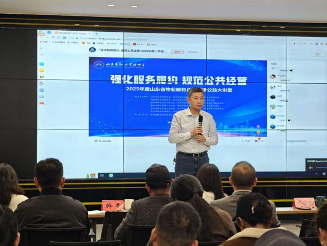 为深入贯彻落实民法典、物业管理条例等相关法律法规规定,全面提升物业服务企业合规经营与风险防范能力,山东省物业管理协会联合16地市物业管理协会于11月25日下午,成功组织举办了“强化服务履约 规范公共经营”2025年度山东省物业服务企业法律公益大讲堂活动。本次活动威海市物业行业党委通过设立威海主会场与各区市分会场的形式,实现了全市物业服务企业负责人及核心管理人员的集中培训学习全覆盖。