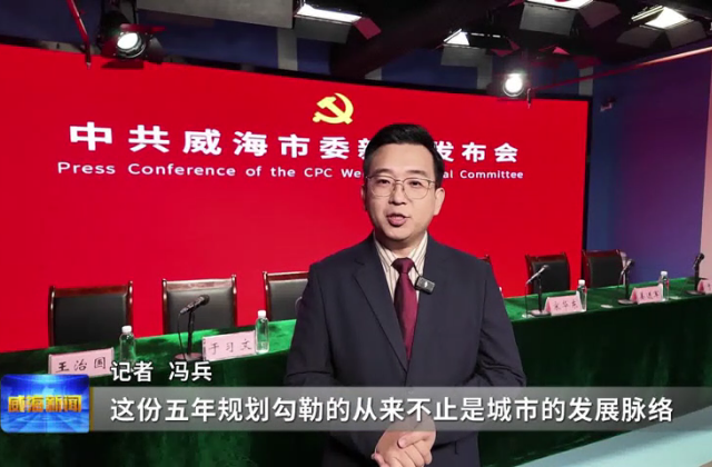 记者冯兵:这里是市委十六届九次全会新闻发布会的现场。今天这场发布会的核心焦点,就是全会审议通过的《中共威海市委关于制定威海市国民经济和社会发展第十五个五年规划的建议》,这份文件正式为威海未来五年乃至更长时期的发展,绘就了精准清晰的行动蓝图。
