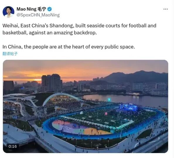 威海以人民为中心的城市建设理念,吸引了外交部发言人毛宁的关注。她在海外社交平台分享至海港湾案例并点赞:“在中国,人民始终占据每一处公共空间最重要的位置。”这一认可,让威海的精致实践再次跨越国界,受到全球网友的关注与点赞。