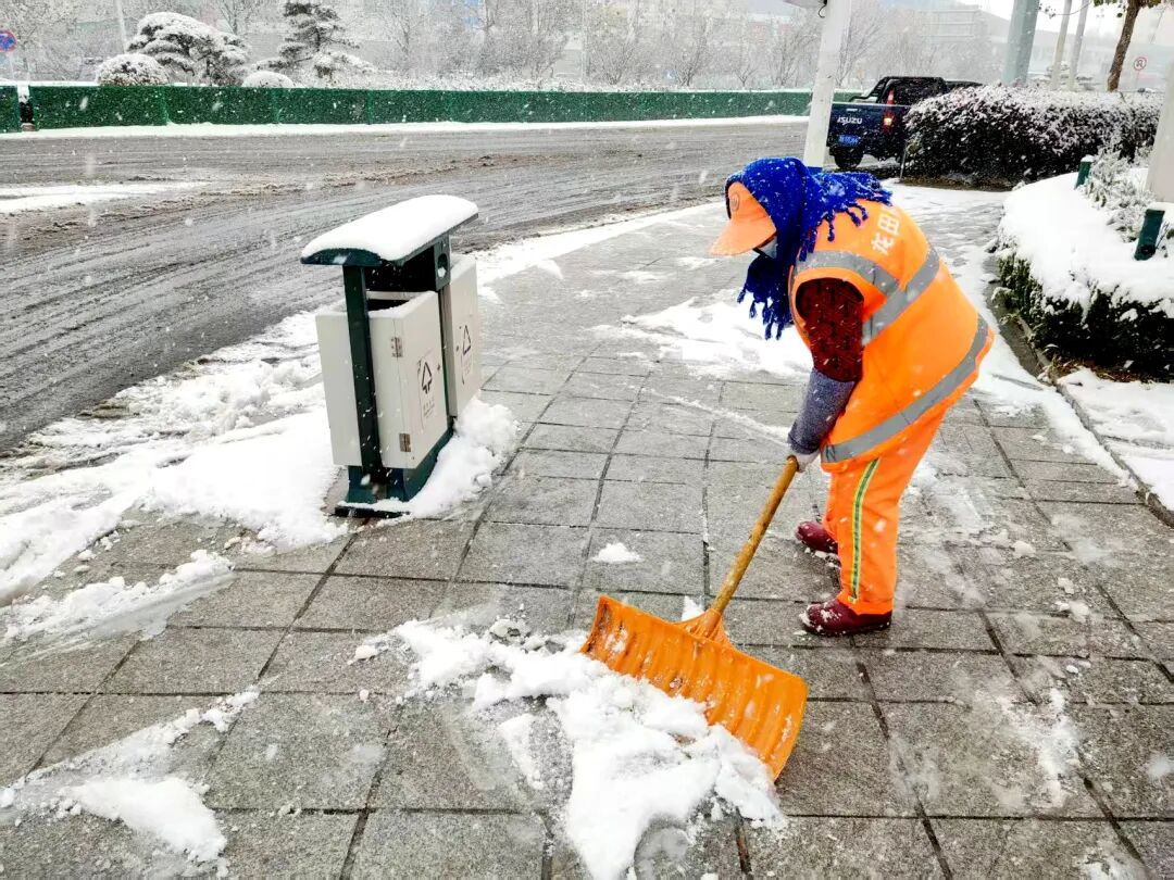 在清雪过程中,物业使用了包括大号鼓风机在内的多种扫雪工具,提高了清雪效率,部分物业企业使用鼓风机清除业主车辆上的积雪,获得业主好评;在机械设备无法覆盖的区域,如狭窄的小道、台阶等,采用人工清雪的方式,对易打滑的小区坡道、楼宇门前等重点区域加强清雪除冰力度,确保清雪工作的全面覆盖。经开区134个小区共出动2600余人次,清雪车辆、设备140余台套,铁锨、扫把等清雪工具3200件,清雪面积达450万平方米。