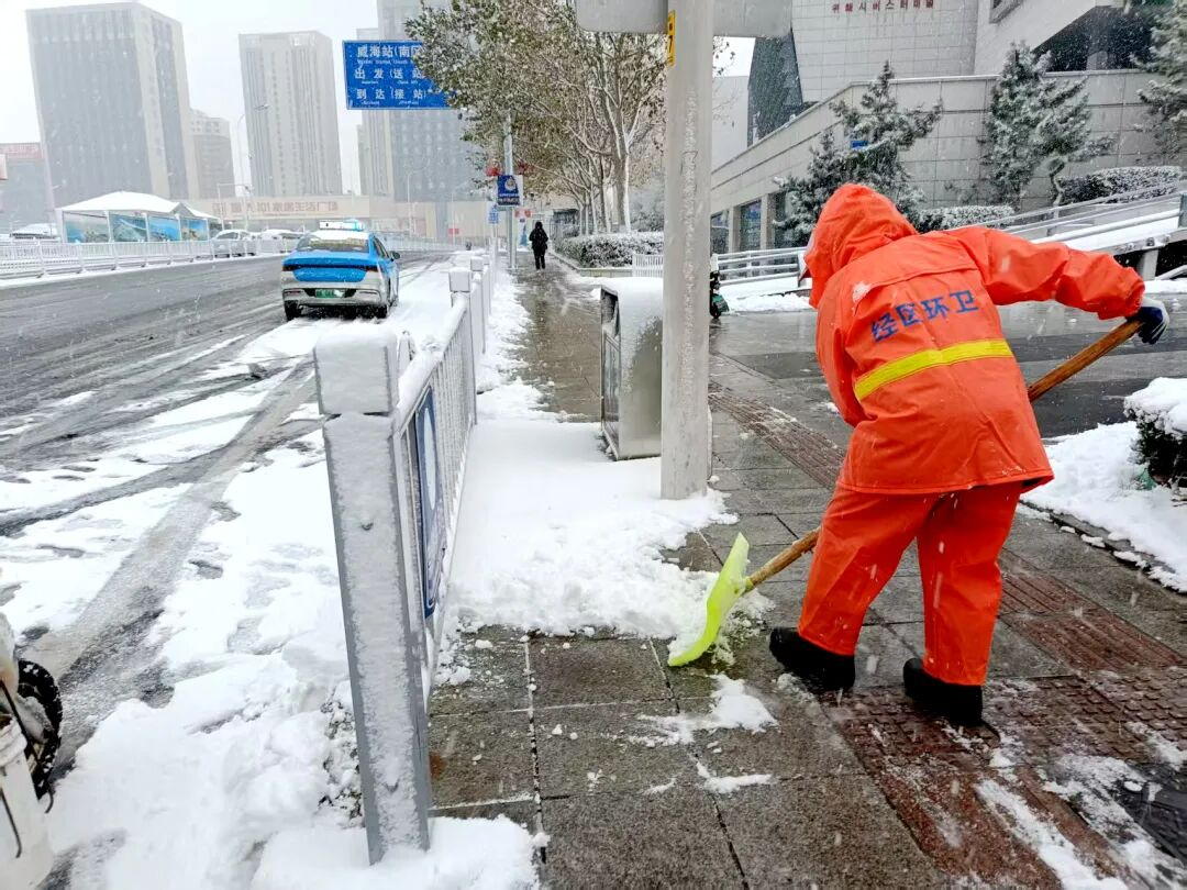 12月3日,受强冷空气影响,威海迎来降雪,经开区以雪为令,各清雪责任单位快速响应,闻雪而动,全力以赴展开清雪工作,保障市民出行平安。