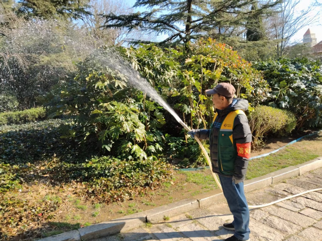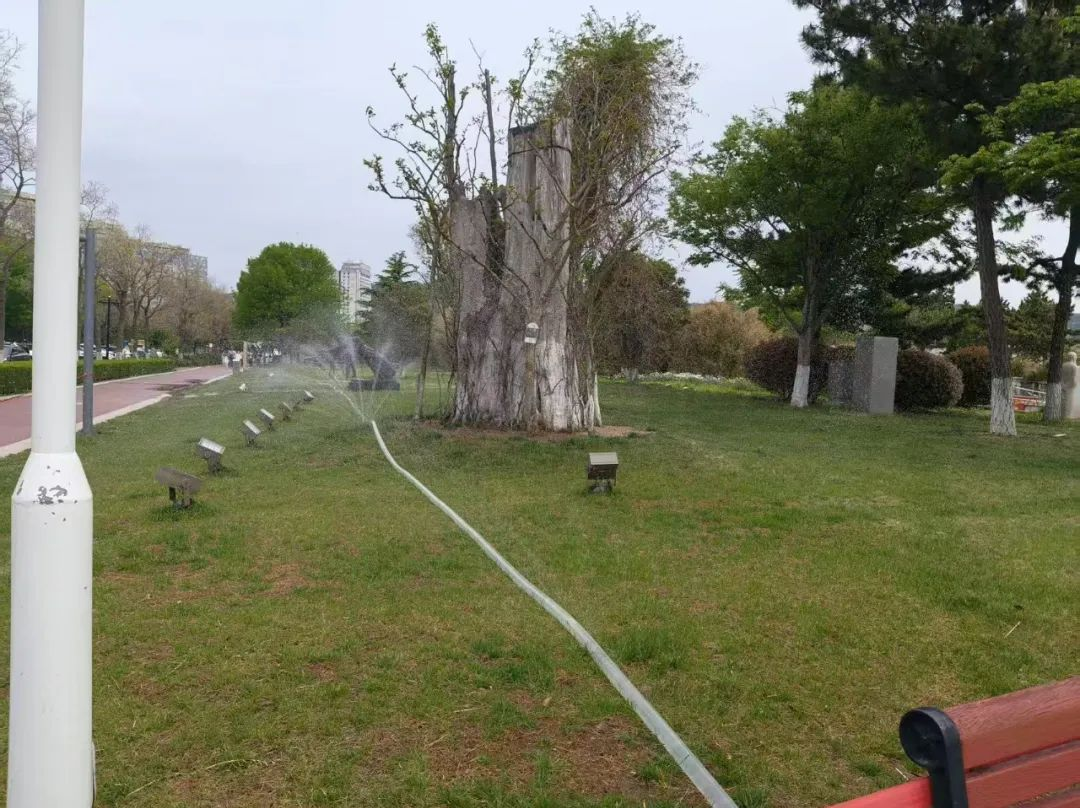 科学浇灌保生机。养护人员仔细检查浇灌车辆与设施,精心规划浇水计划和路线,秉持“细洒慢浇、浇足浇透”原则,对公园内4.5万余平方米绿植进行全面浇灌。同时安排专人巡查,实时监测水分情况,确保植株得到充足水分滋养,维持蓬勃生机。