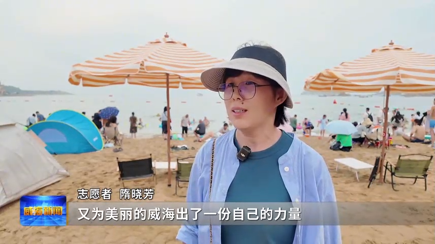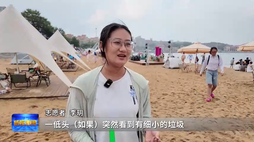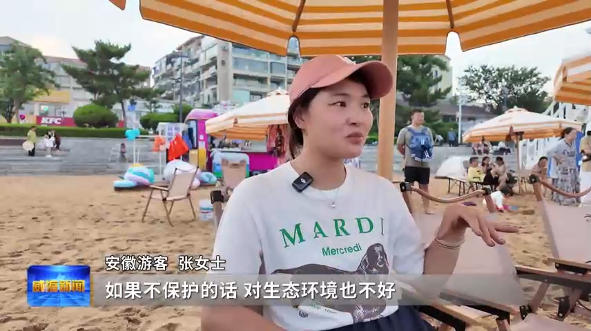 安徽游客张女士说,垃圾都收走,要不然沙滩也不好清理。威海城市很漂亮,如果不保护的话,对生态环境也不好,这个是最基本的文明行为,她们应该做的。