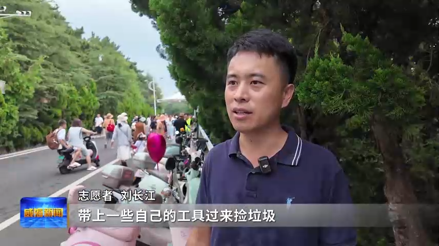 志愿者刘长江说,景区人比较多,工作人员现场的压力也比较大,尤其是环卫工人。带上一些自己的工具过来捡垃圾,帮助游客指一下路,给游客在威海留下一个更好的印象。