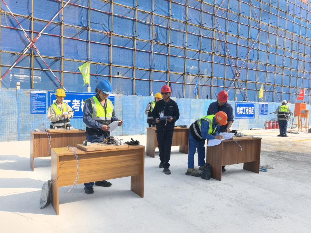 活动现场围绕建筑施工核心工种,科学划分建筑电工、电焊工、架子工、塔式起重机司机等多个专项考核区。参评人员严格遵循操作规程完成实操任务,考评专家全程现场监督、精准评分,以严谨流程保障考核公平性与专业性。本次活动同步开展住建系统“特种作业人员新取证”与人社系统“职业技能等级评价”,实现一次参与、两类证书分别考核,有效提升取证效率,减轻企业和人员负担。