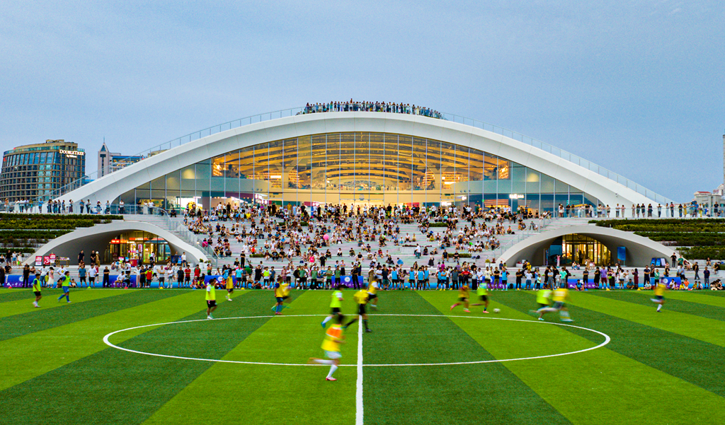 至海港湾通过创新性规划,解决了城市过度商业化挤压公共资源的核心社会痛点,并探索了商业开发与公共福祉平衡的经济新模式,将超过40%的面积用于公共服务与场景体验,建设儿童友好中心、城市年轻力中心等六大功能空间。同时,打造屋顶花园、看海大操场、城市书房等全时段开放空间,提供360°观景视角和专业化健身场地,真正将优质资源还给市民,实现从封闭港区到全民共享空间的转型。