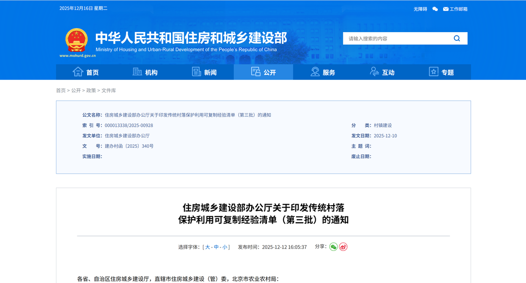 近日,住房城乡建设部办公厅印发《传统村落保护利用可复制经验清单(第三批)》,总结各地在健全传统村落保护管理制度、构建传统...
